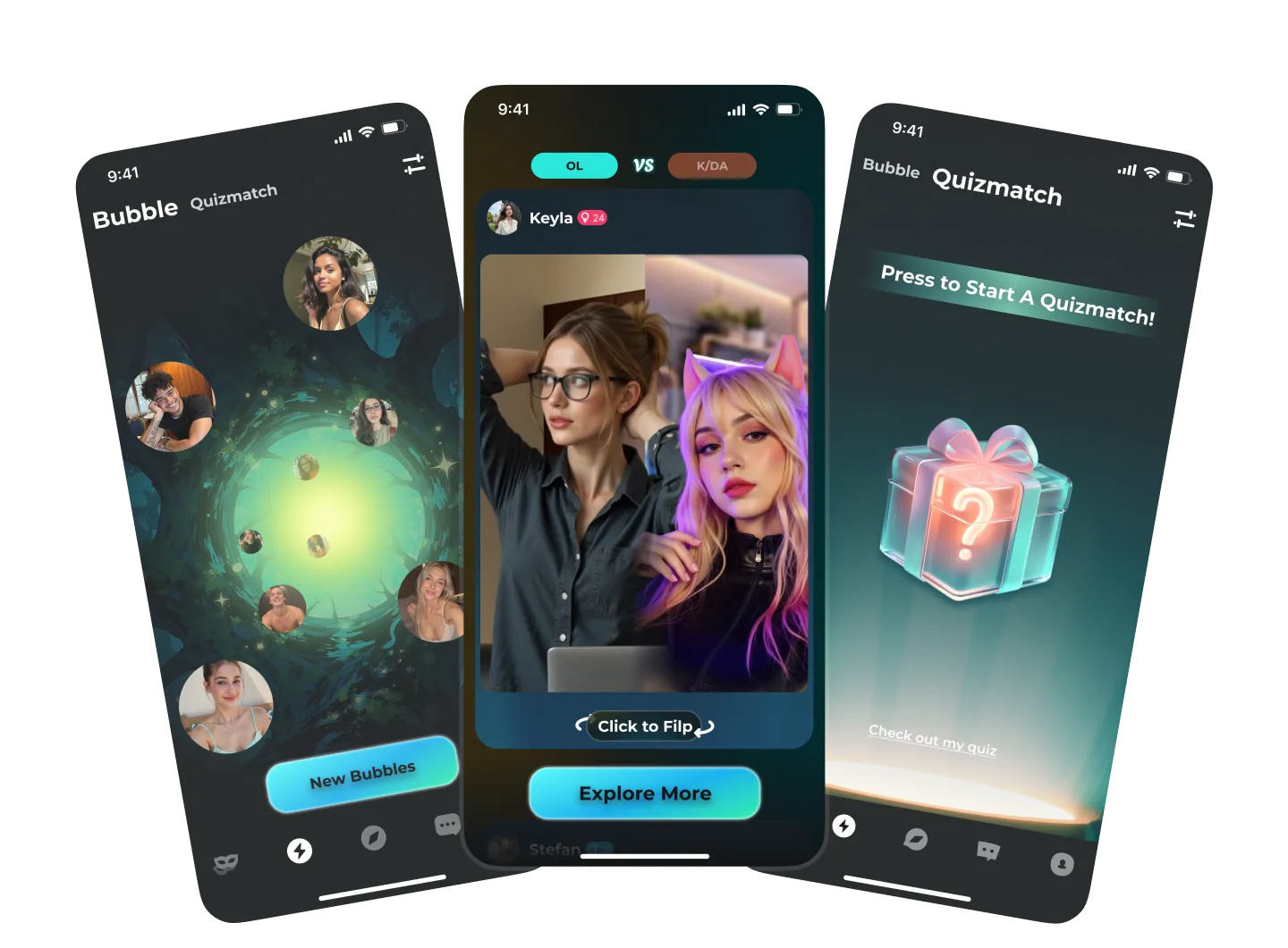 ✨ Pop Bubble – Profiles appear as bubbles. Pop one to reveal who’s inside.